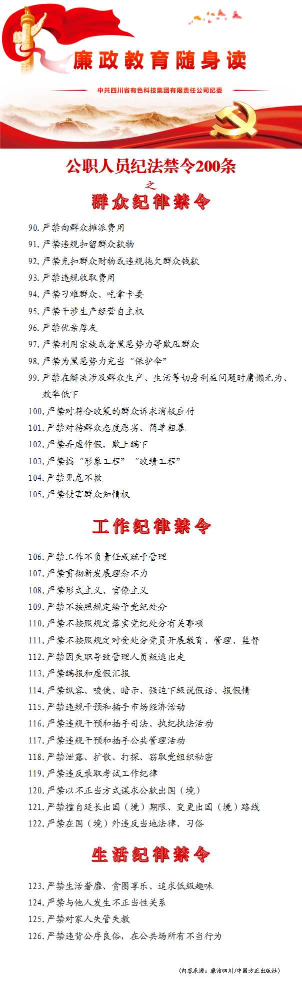 公職人員紀法禁令200條之群衆紀律、工作紀律、生活紀律禁令(第四期)