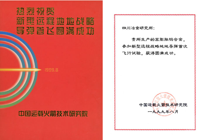 火箭技術研究院遠程導彈試飛成功賀信