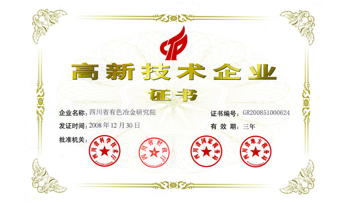 高新技術企業證書